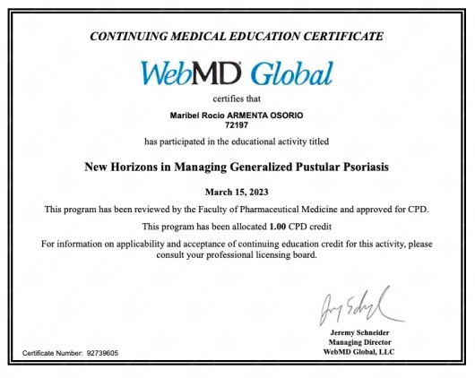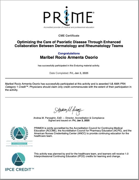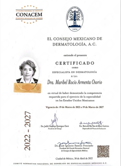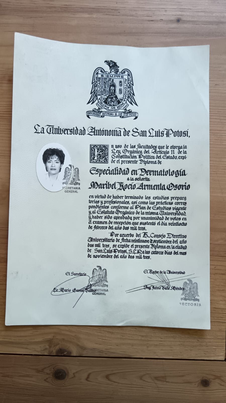 Soy Maribel Armenta Osorio., medico especialista en Dermatología, egresado de la Universidad Autónoma de San Luis Potosí, complementando con cursos de dermatopatología en Wake Forrest University Y New York University. USA., Mi pasión es conocer a las enfermedades cutáneas sus causas, su impacto en nuestra vida, opciones de tratamiento, todo que me permite ayudar a mis pacientes con calidad y calidez, en el diagnóstico y el tratamiento de enfermedades de piel, pelo, mucosa y uñas; brindando atención de la mejor calidad, actualizada. contando con materiales y equipos de vanguardia. Gracias, por permitirme poder brindarles, mi mejor atención. Mi prioridad es restablecer la salud de piel y sus anexos.